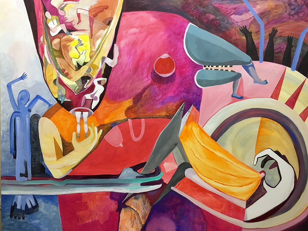 C: Creas un imaginario muy colorista y dinámico en tu obra, casi onírico. ¿Hay una narración premeditada en tu obra que quieres transmitir?