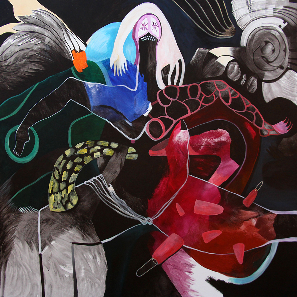 A: Estos elementos son la base fundamental de mis procesos pictóricos; cuando comienzo a dibujar o a pintar no me interesa conocer el resultado final ni saber lo que va a acontecer, son procesos mucho más libres que se van definiendo sin bocetos previos. Me gusta ver como se construye una imagen inesperada a partir de un trazo no premeditado, de un “error” o de una mancha azarosa. Si conozco de antemano a los personajes que aparecen el elemento sorpresa se eclipsa, la intuición se constriñe y el subconsciente no fluye con naturalidad, agarrándose a imágenes conocidas y estereotipadas que se escapan a la extrañeza, imágenes que no me interesan en absoluto.