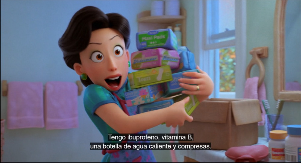 Para ser más clara hay un capítulo en ¡Baymax! que trata el tema de la menstruación; tema que, si bien en la película de Red se toca tangencialmente, en este capítulo lo hace de una manera directa. Sofía, uno de los personajes a los que Baymax ayuda, tiene por primera vez la menstruación.  El asistente médico teniendo conocimientos básicos sobre lo que pasa, va a comprar un producto para ayudarle; claro que él no sabe que prefiere Sofía ¿toallas, tampones? Mientras hace la compra, otros personajes le recomiendan diferentes productos.