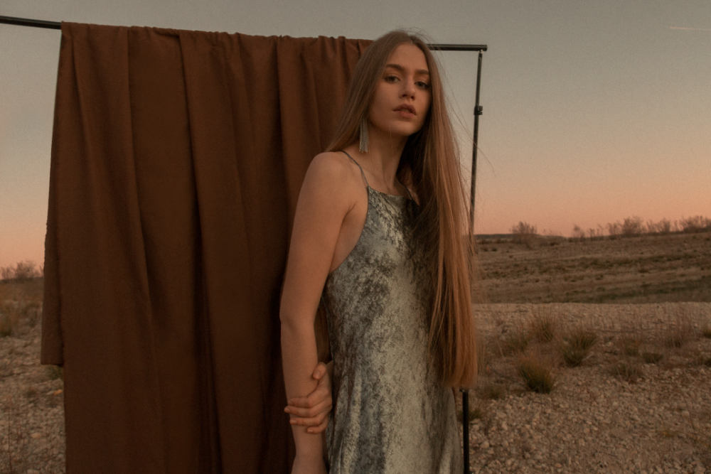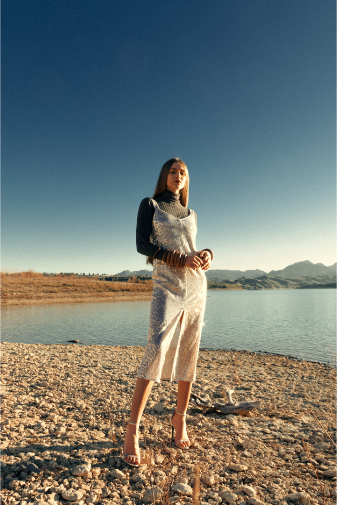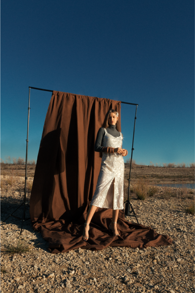 Violeta Toloba lleva jersey de Zara, broche de pelo de Bulgari, brazaletes de Bimba&Lola y tacones de Stella McCartney.