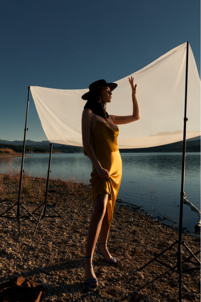 Violeta Toloba lleva vestido de Zara, sombrero de Lack Of Color, joyas Versace Vintage y tacones de Stella McCartney.