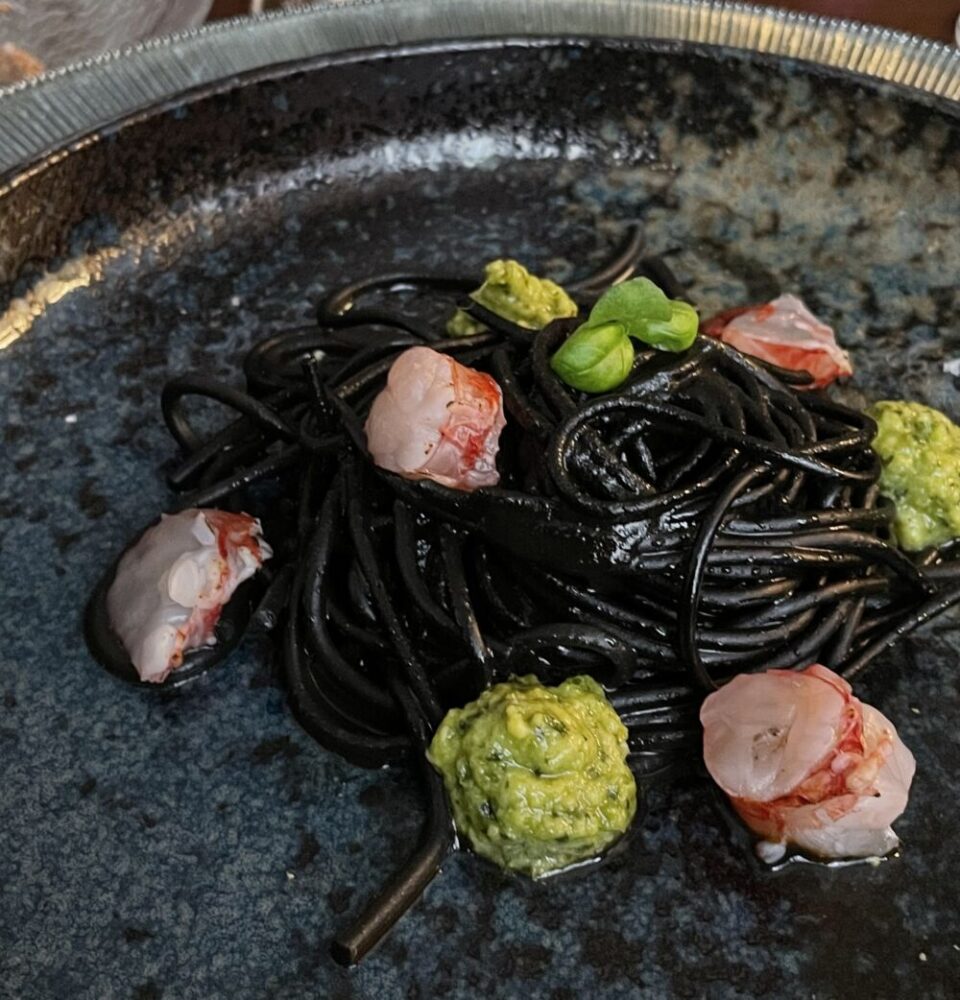 Continuando con la degustación, llegaba la AVARICIA: Spaghetti nero, salsa de tinta thai, carabinero y pesto de pistacho. Sabéis que mi perdición en la vida es la pasta, por lo que tengo un listón elevado con ella, por lo que era un plato que estaba muy bueno y que el toque thai era muy curioso combinado con el pesto, pero no fue el plato que más destacaría del menú.
