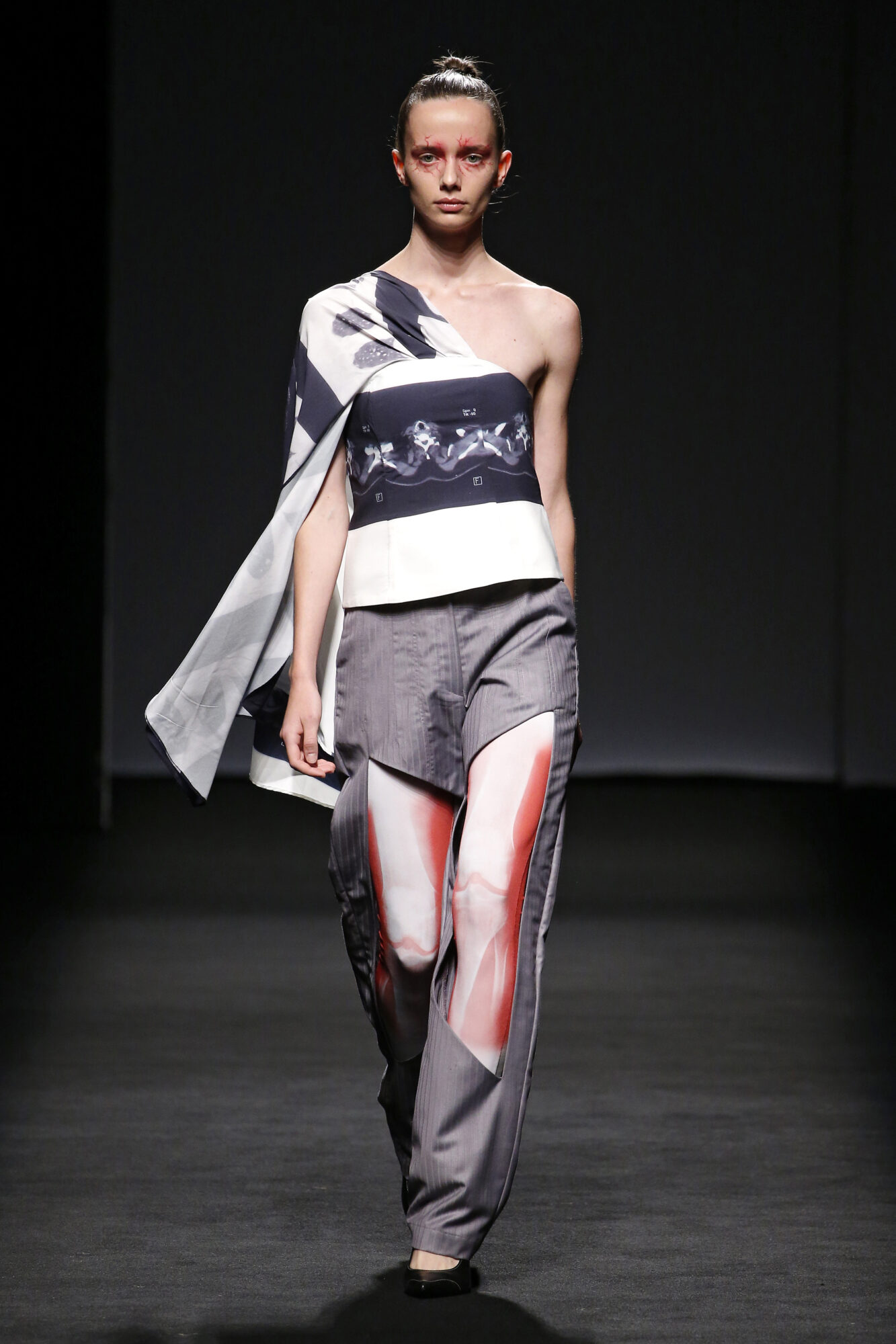 Para finalizar, la anterior ganadora de la pasada edición de Samsung EGO en Tbilisi, la diseñadora georgiana Marian Gvasalia. Presento una colección atípica en la que sus estampados estaban relacionados con el mundo de la medicina y la biología, a través de muestras de microscopios e incluso radiografías.
