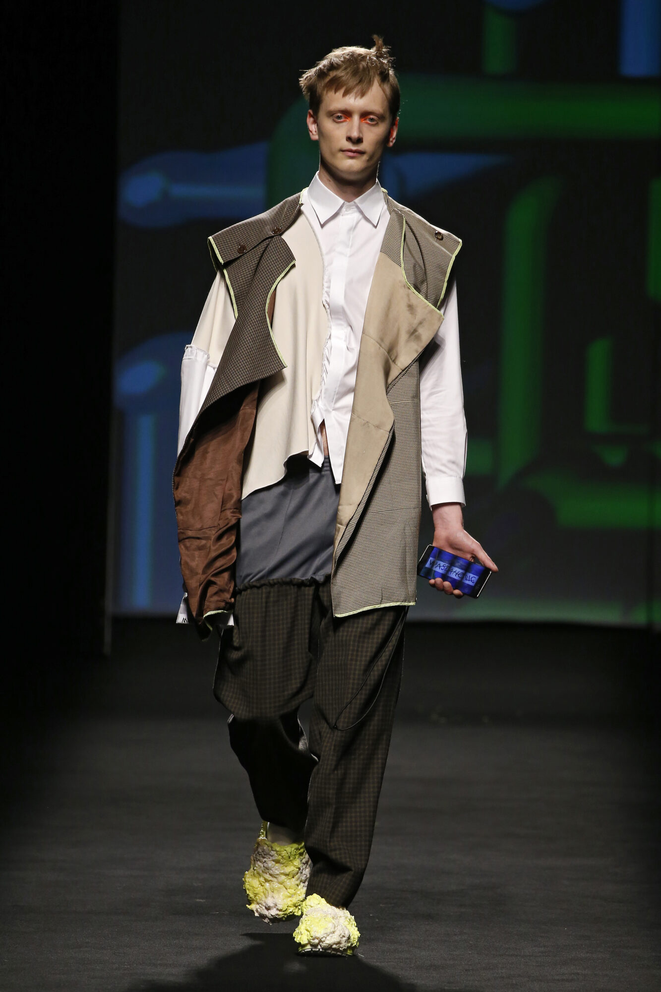 De nuevo la sostenibilidad y el reciclaje se hacen presentes, y es que la firma Wastaholic ha creado su colección a través de tejidos desechados de diferentes escuelas de diseño. En definitiva, un desfile lleno de alocadas ideas que dan pasó a prendas diferentes.