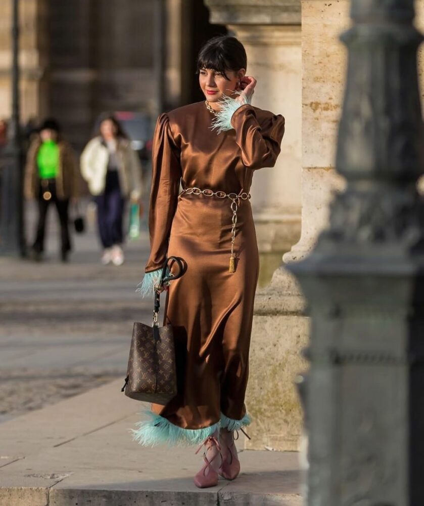 Este detalle del cinturón que lo convierte en una joya hunde sus raíces en los años 70. Una década marcada por los estampados bohemios y los abalorios recargados característicos del movimiento hippie que tardó en llegar a España. El cinturón joya se parece al típico cinturón de Gucci pero consigue trascender del ámbito utilitario.