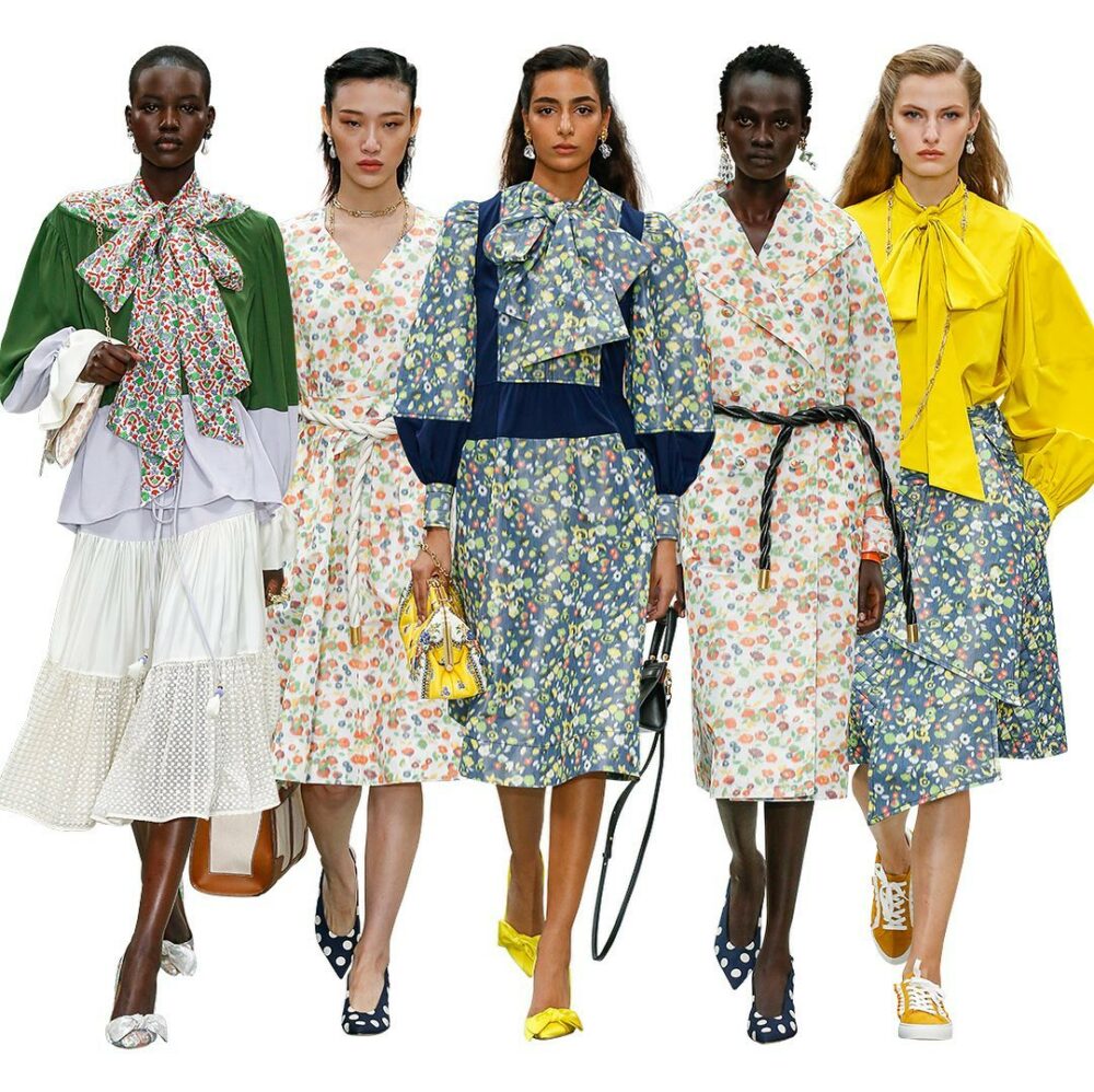 La colección fue una celebración del romanticismo primaveral y la feminidad en todas sus formas que la diseñadora hizo tangible. Lo hizo a través de vestidos ligeros e idealistas con bordados florales y mangas abullonadas que evocaban la década de los ochenta. Así mismo, más alla de una paleta de ensueño y de siluetas dramáticas, Tory Burch creó un mundo paralelo lleno de excentricidades como lentejuelas, volantes, cuellos altos y pantalones anchos que parecían fuerte reminiscencia de Lady Di.