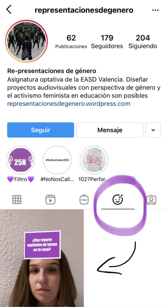 Un grupo de estudiantes de la EASD de Valencia han sido la mente creativa de este filtro de Instagram para un día reivindicativo: Día Contra la Violencia de Género