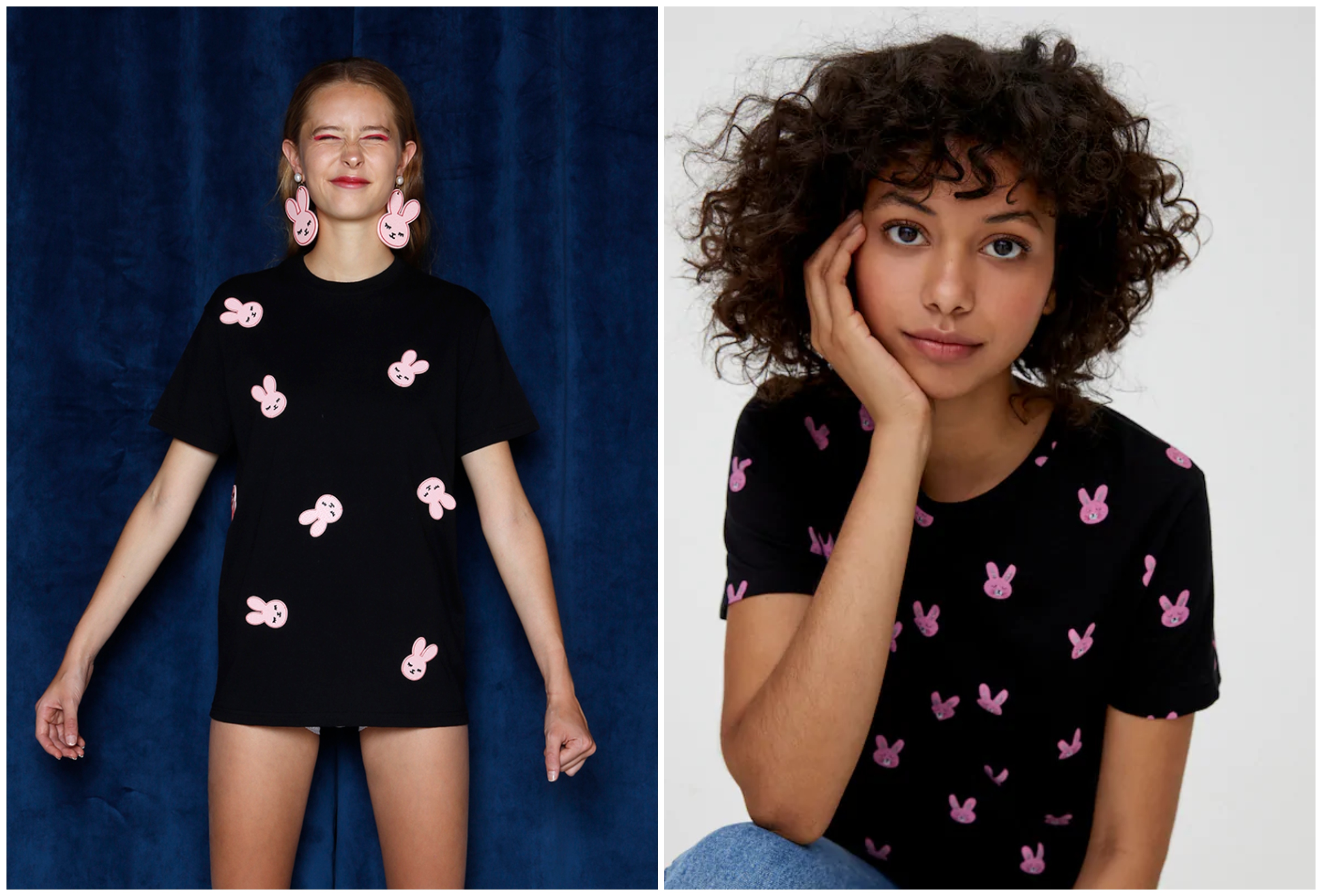 A la izquierda, la camiseta de Becomely, a la derecha, la plagiada por Pull & Bear
